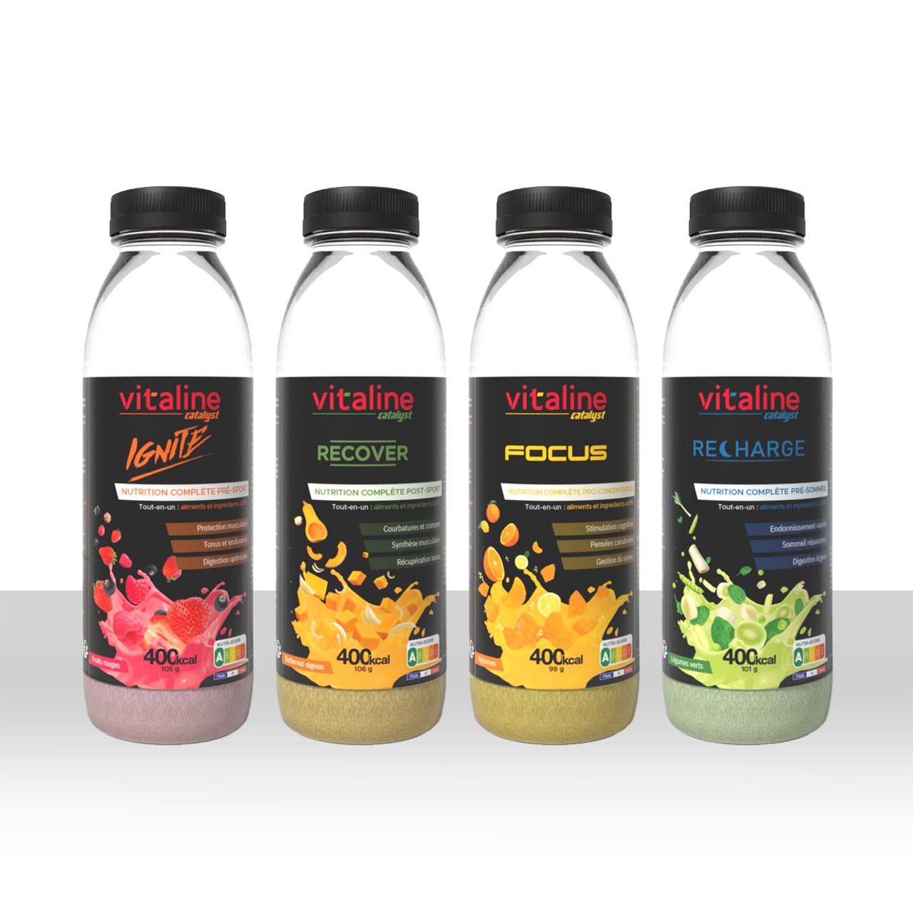 Les bouteilles sont un format individuel de 400 kcal. Au bureau, dans les transports, en randonnée, dans votre sac ou votre boite à gant : c’est super pratique à emporter en toute situation. Prêt en 1 min. Elles sont en PET à 50% recyclés et 100% recyclables.
