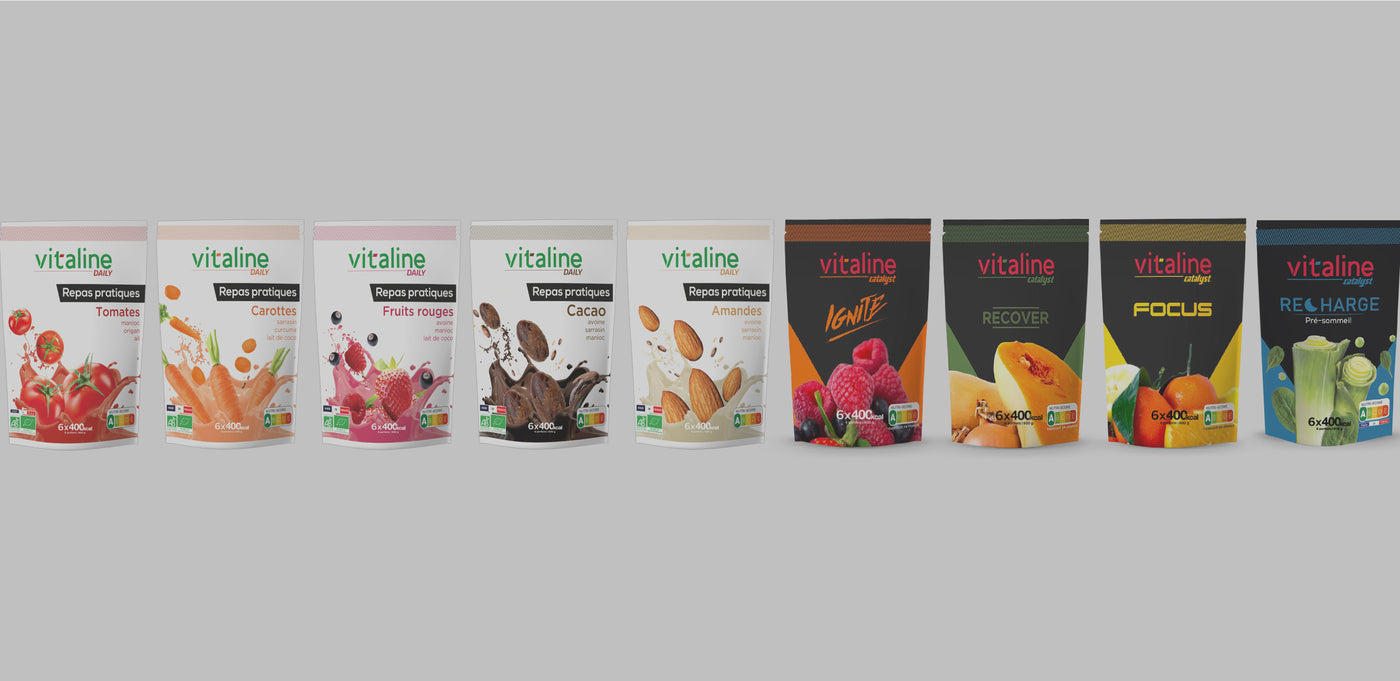 Nos formules sont déshydratées pour stabiliser les nombreux nutriments et obtenir une longue conservation et cette qualité nutritionnelle : chez Vitaline, la nutrition est reine.