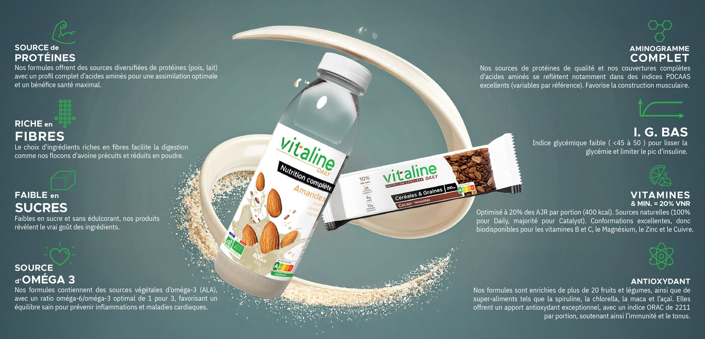 Une nutrition de qualité c’est une somme de nombreux détails. Ne pas les traiter, c’est ne pas traiter le problème. Nos produits ne sont pas parfaits, mais chez Vitaline, nous allons plus loin que quiconque dans notre secteur. Pour vous offrir une nutrition excellente, une vraie.