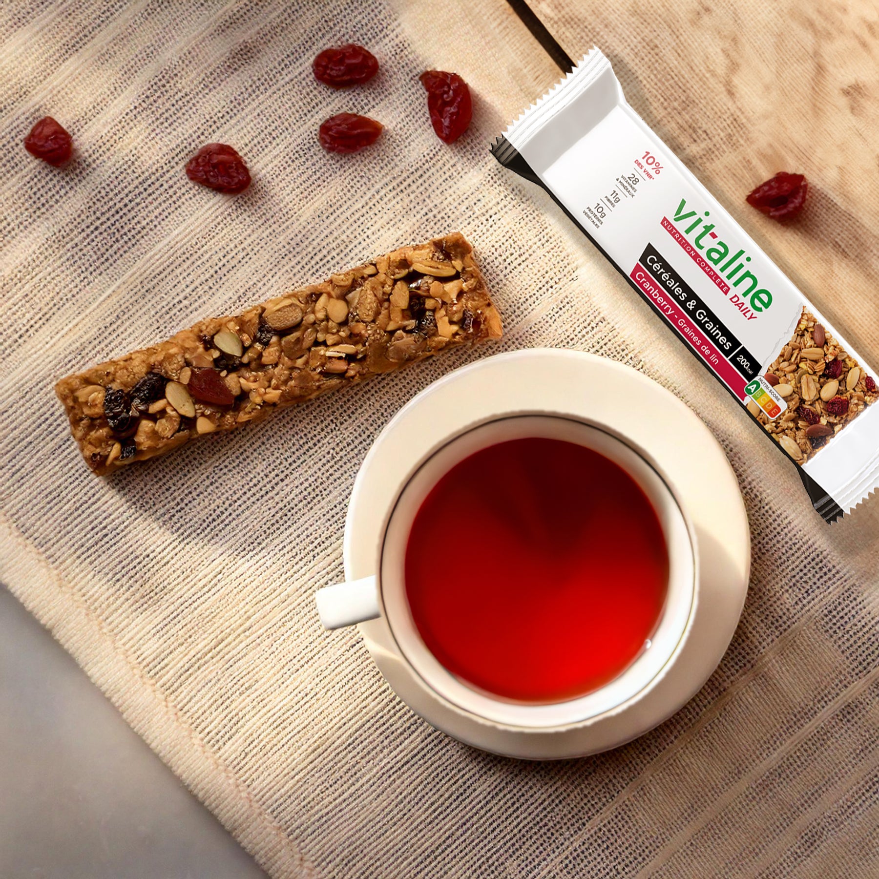 L’alliance parfaite entre la douceur acidulée de la cranberry et le croquant des graines de lin. L’expertise Vitaline dans une barre de céréales et graines complètes, idéale pour une pause à la fois savoureuse et super nutritive.